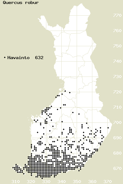 Tämä on jatkuvasti päivittyvä kasviatlaksen karttasivu taksonista Quercus robur. Tästä taksonista voi olla karttoja eri vuosien atlaksissa: 2018 / 2017 / 2016 / 2015 / 2014 / 2013 / 2012 / 2011 / 2010 / 2009 / 2008 / 2007 / 2006.