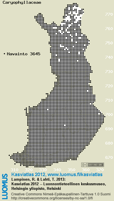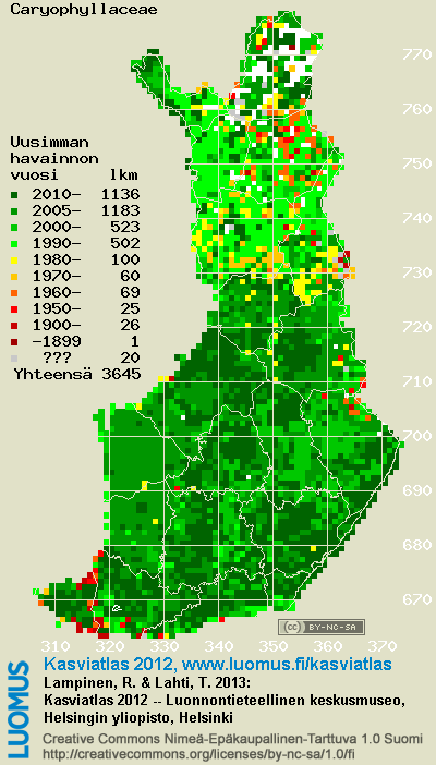 Tämä on vuoden 2012 kasviatlaksen karttasivu taksonista Caryophyllaceae. Tästä taksonista voi olla karttoja myös muissa atlaksen vuosiversioissa: 2018 / 2017 / 2016 / 2015 / 2014 / 2013 / 2012 / 2011 / 2010 / 2009 / 2008 / 2007 / 2006.