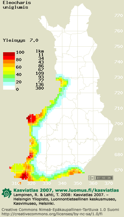 Tämä on vuoden 2006 kasviatlaksen karttasivu taksonista Eleocharis uniglumis. Tästä taksonista voi olla karttoja myös muissa atlaksen vuosiversioissa: 2018 / 2017 / 2016 / 2015 / 2014 / 2013 / 2012 / 2011 / 2010 / 2009 / 2008 / 2007 / 2006.