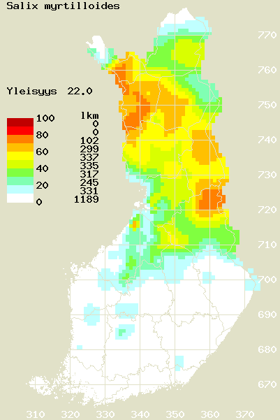 Tämä on jatkuvasti päivittyvä kasviatlaksen karttasivu taksonista Salix myrtilloides. Tästä taksonista voi olla karttoja eri vuosien atlaksissa: 2018 / 2017 / 2016 / 2015 / 2014 / 2013 / 2012 / 2011 / 2010 / 2009 / 2008 / 2007 / 2006.