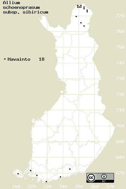 Tämä on vuoden 2017 kasviatlaksen karttasivu taksonista Allium schoenoprasum subsp. sibiricum. Tästä taksonista voi olla karttoja myös muissa atlaksen vuosiversioissa: 2018 / 2017 / 2016 / 2015 / 2014 / 2013 / 2012 / 2011 / 2010 / 2009 / 2008 / 2007 / 2006.
