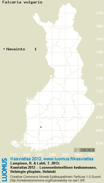 Tämä on vuoden 2012 kasviatlaksen karttasivu taksonista Falcaria vulgaris. Tästä taksonista voi olla karttoja myös muissa atlaksen vuosiversioissa: 2018 / 2017 / 2016 / 2015 / 2014 / 2013 / 2012 / 2011 / 2010 / 2009 / 2008 / 2007 / 2006.