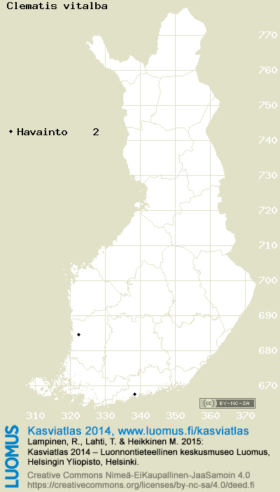 Tämä on vuoden 2014 kasviatlaksen karttasivu taksonista Clematis vitalba. Tästä taksonista voi olla karttoja myös muissa atlaksen vuosiversioissa: 2018 / 2017 / 2016 / 2015 / 2014 / 2013 / 2012 / 2011 / 2010 / 2009 / 2008 / 2007 / 2006.
