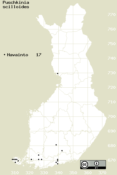 Tämä on vuoden 2017 kasviatlaksen karttasivu taksonista Puschkinia scilloides. Tästä taksonista voi olla karttoja myös muissa atlaksen vuosiversioissa: 2018 / 2017 / 2016 / 2015 / 2014 / 2013 / 2012 / 2011 / 2010 / 2009 / 2008 / 2007 / 2006.