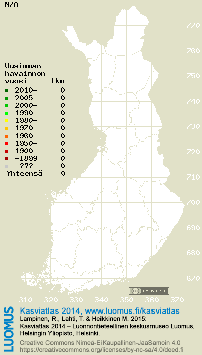 Tämä on vuoden 2014 kasviatlaksen karttasivu taksonista . Tästä taksonista voi olla karttoja myös muissa atlaksen vuosiversioissa: 2018 / 2017 / 2016 / 2015 / 2014 / 2013 / 2012 / 2011 / 2010 / 2009 / 2008 / 2007 / 2006.