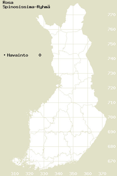 Tämä on jatkuvasti päivittyvä kasviatlaksen karttasivu taksonista Rosa Spinosissima-Ryhmä. Tästä taksonista voi olla karttoja eri vuosien atlaksissa: 2018 / 2017 / 2016 / 2015 / 2014 / 2013 / 2012 / 2011 / 2010 / 2009 / 2008 / 2007 / 2006.