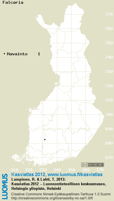 Tämä on vuoden 2012 kasviatlaksen karttasivu taksonista Falcaria. Tästä taksonista voi olla karttoja myös muissa atlaksen vuosiversioissa: 2018 / 2017 / 2016 / 2015 / 2014 / 2013 / 2012 / 2011 / 2010 / 2009 / 2008 / 2007 / 2006.