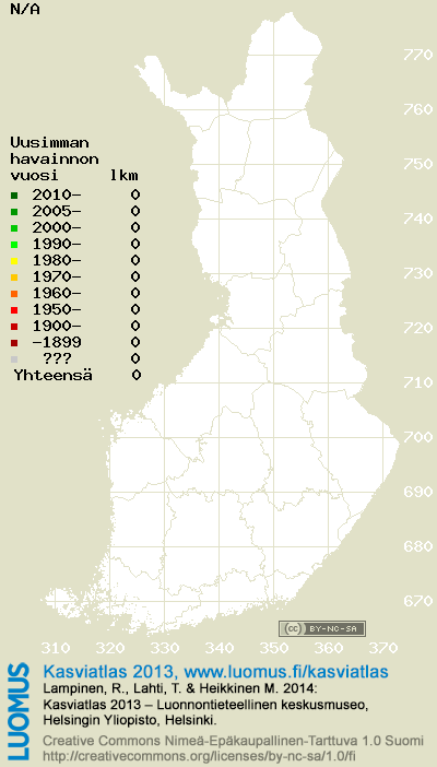 Tämä on vuoden 2013 kasviatlaksen karttasivu taksonista . Tästä taksonista voi olla karttoja myös muissa atlaksen vuosiversioissa: 2018 / 2017 / 2016 / 2015 / 2014 / 2013 / 2012 / 2011 / 2010 / 2009 / 2008 / 2007 / 2006.