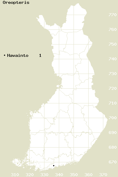 Tämä on jatkuvasti päivittyvä kasviatlaksen karttasivu taksonista Oreopteris. Tästä taksonista voi olla karttoja eri vuosien atlaksissa: 2018 / 2017 / 2016 / 2015 / 2014 / 2013 / 2012 / 2011 / 2010 / 2009 / 2008 / 2007 / 2006.