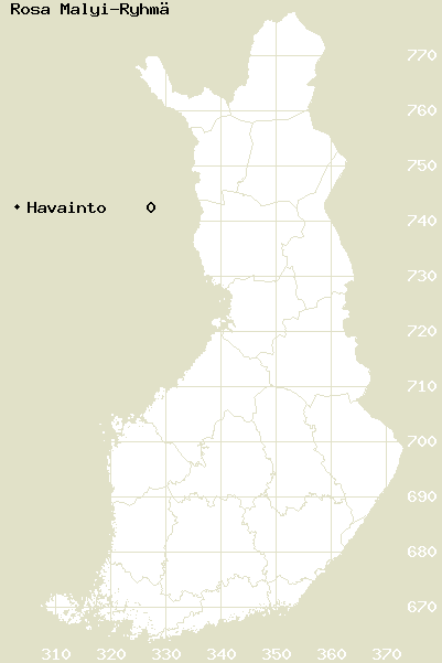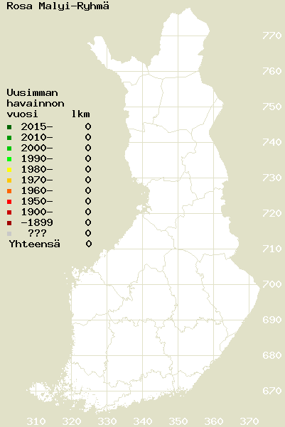 Tämä on jatkuvasti päivittyvä kasviatlaksen karttasivu taksonista Rosa Malyi-Ryhmä. Tästä taksonista voi olla karttoja eri vuosien atlaksissa: 2018 / 2017 / 2016 / 2015 / 2014 / 2013 / 2012 / 2011 / 2010 / 2009 / 2008 / 2007 / 2006.
