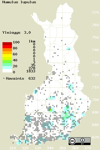 Tämä on vuoden 2017 kasviatlaksen karttasivu taksonista Humulus lupulus. Tästä taksonista voi olla karttoja myös muissa atlaksen vuosiversioissa: 2018 / 2017 / 2016 / 2015 / 2014 / 2013 / 2012 / 2011 / 2010 / 2009 / 2008 / 2007 / 2006.