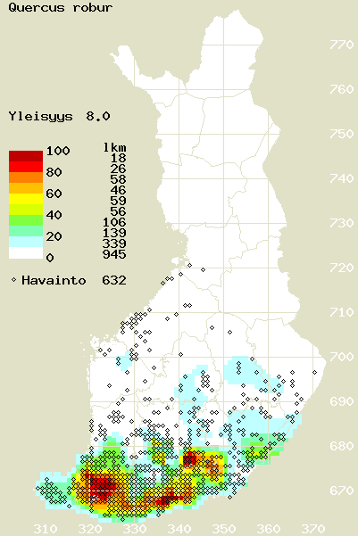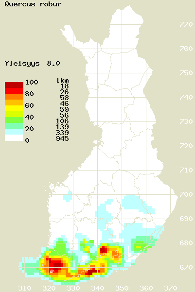 Tämä on jatkuvasti päivittyvä kasviatlaksen karttasivu taksonista Quercus robur. Tästä taksonista voi olla karttoja eri vuosien atlaksissa: 2018 / 2017 / 2016 / 2015 / 2014 / 2013 / 2012 / 2011 / 2010 / 2009 / 2008 / 2007 / 2006.