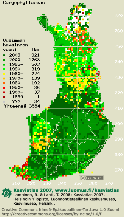 Tämä on vuoden 2006 kasviatlaksen karttasivu taksonista Caryophyllaceae. Tästä taksonista voi olla karttoja myös muissa atlaksen vuosiversioissa: 2018 / 2017 / 2016 / 2015 / 2014 / 2013 / 2012 / 2011 / 2010 / 2009 / 2008 / 2007 / 2006.