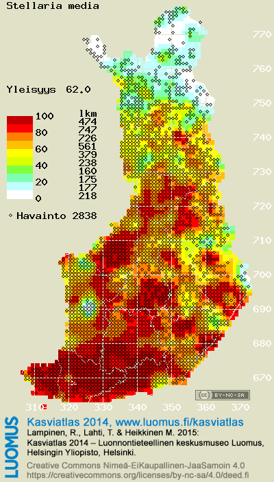 Tämä on vuoden 2014 kasviatlaksen karttasivu taksonista Stellaria media. Tästä taksonista voi olla karttoja myös muissa atlaksen vuosiversioissa: 2018 / 2017 / 2016 / 2015 / 2014 / 2013 / 2012 / 2011 / 2010 / 2009 / 2008 / 2007 / 2006.
