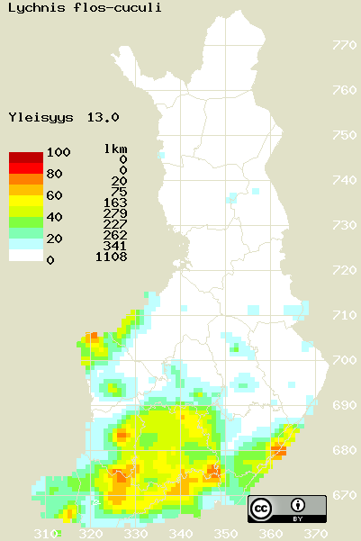 Tämä on vuoden 2017 kasviatlaksen karttasivu taksonista Lychnis flos-cuculi. Tästä taksonista voi olla karttoja myös muissa atlaksen vuosiversioissa: 2018 / 2017 / 2016 / 2015 / 2014 / 2013 / 2012 / 2011 / 2010 / 2009 / 2008 / 2007 / 2006.