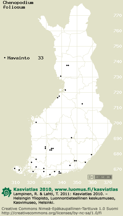 Tämä on vuoden 2010 kasviatlaksen karttasivu taksonista Chenopodium foliosum. Tästä taksonista voi olla karttoja myös muissa atlaksen vuosiversioissa: 2018 / 2017 / 2016 / 2015 / 2014 / 2013 / 2012 / 2011 / 2010 / 2009 / 2008 / 2007 / 2006.