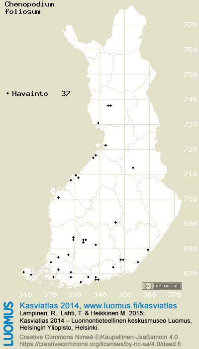 Tämä on vuoden 2014 kasviatlaksen karttasivu taksonista Chenopodium foliosum. Tästä taksonista voi olla karttoja myös muissa atlaksen vuosiversioissa: 2018 / 2017 / 2016 / 2015 / 2014 / 2013 / 2012 / 2011 / 2010 / 2009 / 2008 / 2007 / 2006.