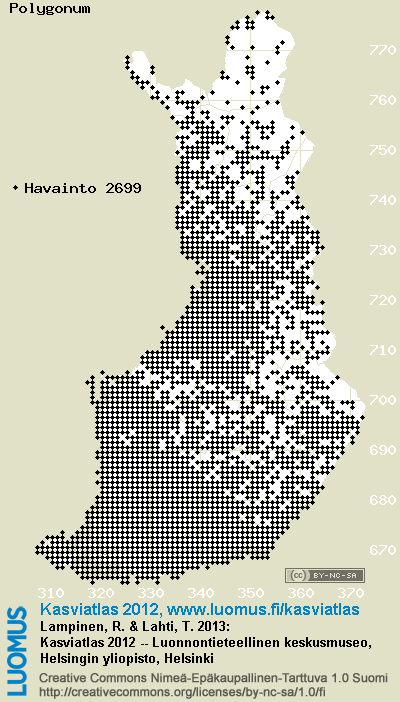 Tämä on vuoden 2012 kasviatlaksen karttasivu taksonista Polygonum. Tästä taksonista voi olla karttoja myös muissa atlaksen vuosiversioissa: 2018 / 2017 / 2016 / 2015 / 2014 / 2013 / 2012 / 2011 / 2010 / 2009 / 2008 / 2007 / 2006.