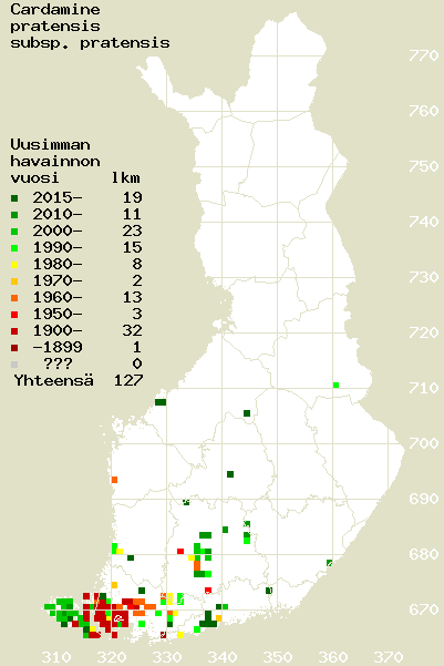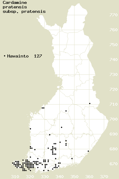 Tämä on jatkuvasti päivittyvä kasviatlaksen karttasivu taksonista Cardamine pratensis subsp. pratensis. Tästä taksonista voi olla karttoja eri vuosien atlaksissa: 2018 / 2017 / 2016 / 2015 / 2014 / 2013 / 2012 / 2011 / 2010 / 2009 / 2008 / 2007 / 2006.