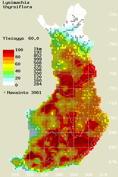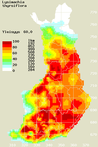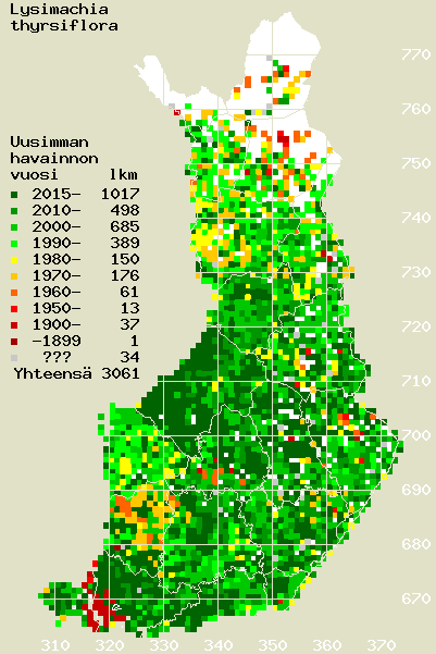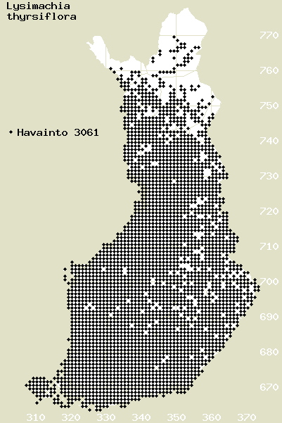 Tämä on jatkuvasti päivittyvä kasviatlaksen karttasivu taksonista Lysimachia thyrsiflora. Tästä taksonista voi olla karttoja eri vuosien atlaksissa: 2018 / 2017 / 2016 / 2015 / 2014 / 2013 / 2012 / 2011 / 2010 / 2009 / 2008 / 2007 / 2006.