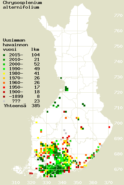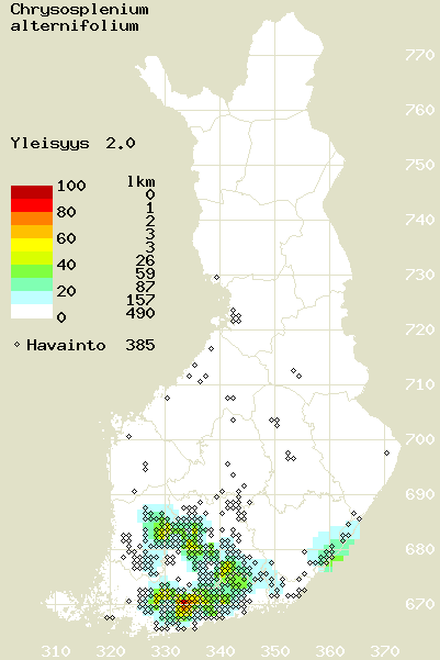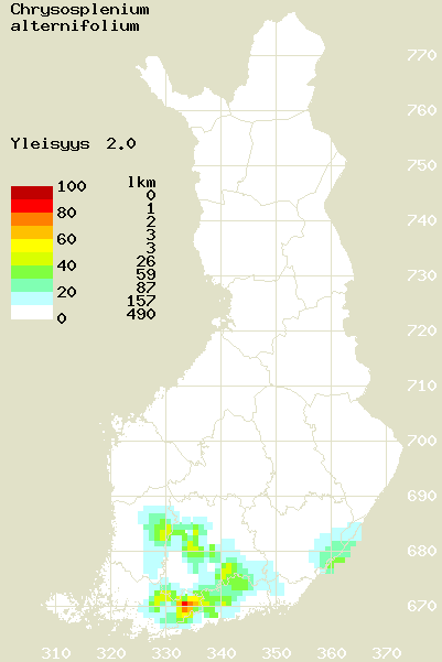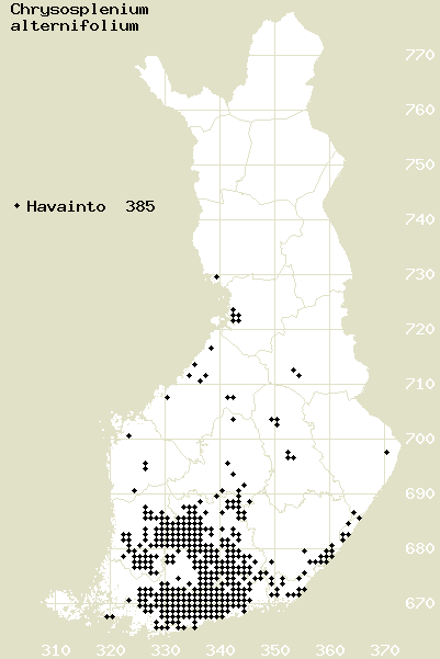 Tämä on jatkuvasti päivittyvä kasviatlaksen karttasivu taksonista Chrysosplenium alternifolium. Tästä taksonista voi olla karttoja eri vuosien atlaksissa: 2018 / 2017 / 2016 / 2015 / 2014 / 2013 / 2012 / 2011 / 2010 / 2009 / 2008 / 2007 / 2006.