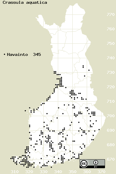 Tämä on vuoden 2017 kasviatlaksen karttasivu taksonista Crassula aquatica. Tästä taksonista voi olla karttoja myös muissa atlaksen vuosiversioissa: 2018 / 2017 / 2016 / 2015 / 2014 / 2013 / 2012 / 2011 / 2010 / 2009 / 2008 / 2007 / 2006.