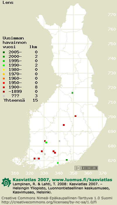 Tämä on vuoden 2006 kasviatlaksen karttasivu taksonista Lens. Tästä taksonista voi olla karttoja myös muissa atlaksen vuosiversioissa: 2018 / 2017 / 2016 / 2015 / 2014 / 2013 / 2012 / 2011 / 2010 / 2009 / 2008 / 2007 / 2006.