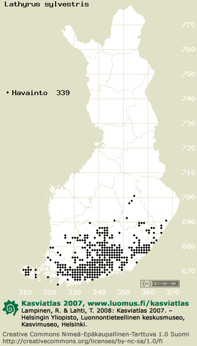 Tämä on vuoden 2007 kasviatlaksen karttasivu taksonista Lathyrus sylvestris. Tästä taksonista voi olla karttoja myös muissa atlaksen vuosiversioissa: 2018 / 2017 / 2016 / 2015 / 2014 / 2013 / 2012 / 2011 / 2010 / 2009 / 2008 / 2007 / 2006.