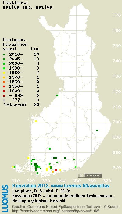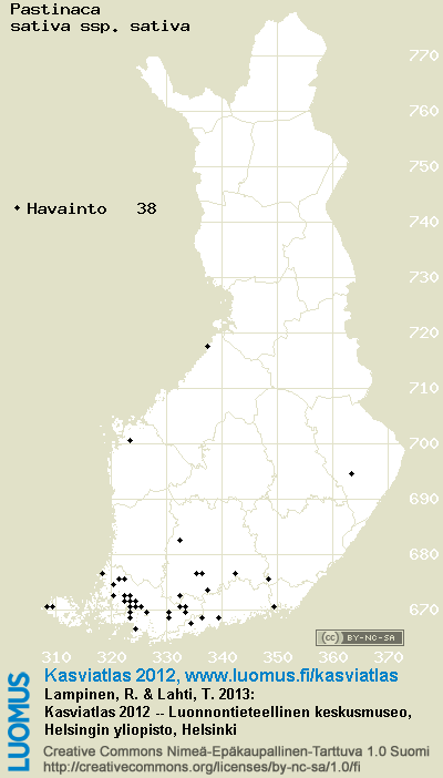 Tämä on vuoden 2012 kasviatlaksen karttasivu taksonista Pastinaca sativa ssp. sativa. Tästä taksonista voi olla karttoja myös muissa atlaksen vuosiversioissa: 2018 / 2017 / 2016 / 2015 / 2014 / 2013 / 2012 / 2011 / 2010 / 2009 / 2008 / 2007 / 2006.