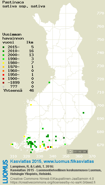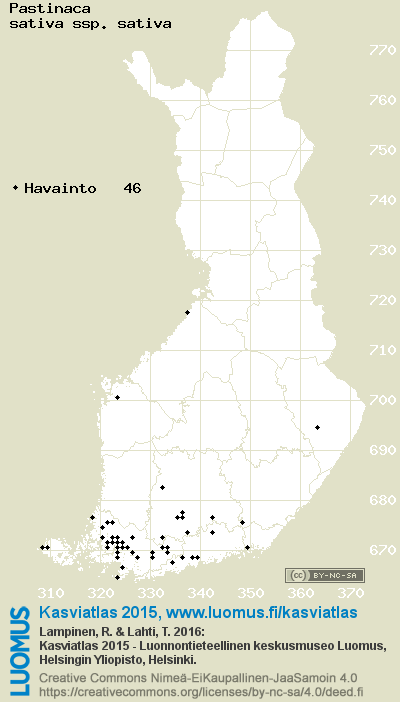 Tämä on vuoden 2015 kasviatlaksen karttasivu taksonista Pastinaca sativa ssp. sativa. Tästä taksonista voi olla karttoja myös muissa atlaksen vuosiversioissa: 2018 / 2017 / 2016 / 2015 / 2014 / 2013 / 2012 / 2011 / 2010 / 2009 / 2008 / 2007 / 2006.