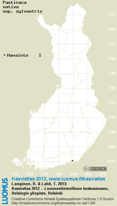 Tämä on vuoden 2012 kasviatlaksen karttasivu taksonista Pastinaca sativa ssp. sylvestris. Tästä taksonista voi olla karttoja myös muissa atlaksen vuosiversioissa: 2018 / 2017 / 2016 / 2015 / 2014 / 2013 / 2012 / 2011 / 2010 / 2009 / 2008 / 2007 / 2006.