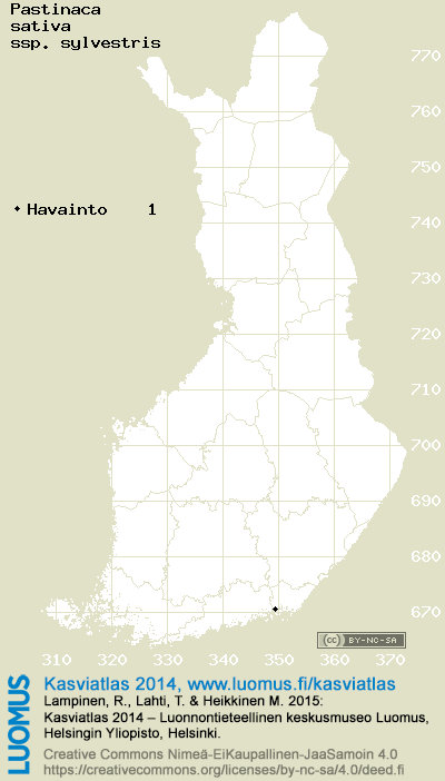 Tämä on vuoden 2014 kasviatlaksen karttasivu taksonista Pastinaca sativa ssp. sylvestris. Tästä taksonista voi olla karttoja myös muissa atlaksen vuosiversioissa: 2018 / 2017 / 2016 / 2015 / 2014 / 2013 / 2012 / 2011 / 2010 / 2009 / 2008 / 2007 / 2006.