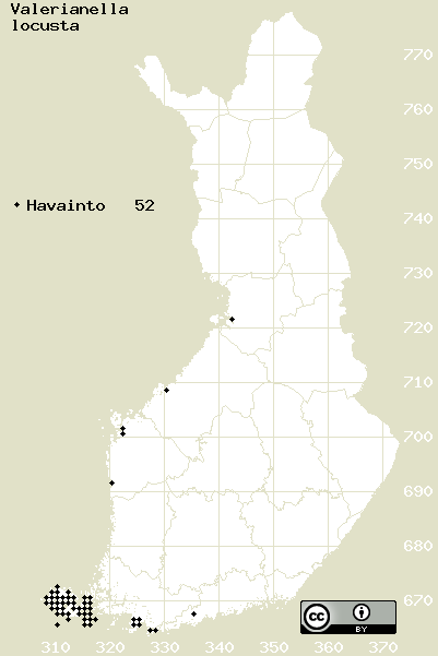 Tämä on vuoden 2017 kasviatlaksen karttasivu taksonista Valerianella locusta. Tästä taksonista voi olla karttoja myös muissa atlaksen vuosiversioissa: 2018 / 2017 / 2016 / 2015 / 2014 / 2013 / 2012 / 2011 / 2010 / 2009 / 2008 / 2007 / 2006.