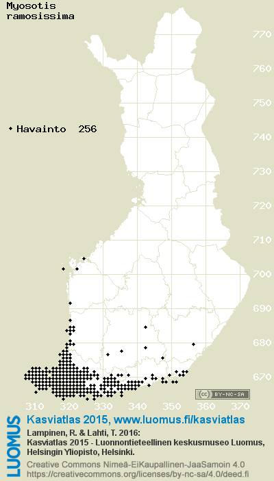 Tämä on vuoden 2015 kasviatlaksen karttasivu taksonista Myosotis ramosissima. Tästä taksonista voi olla karttoja myös muissa atlaksen vuosiversioissa: 2018 / 2017 / 2016 / 2015 / 2014 / 2013 / 2012 / 2011 / 2010 / 2009 / 2008 / 2007 / 2006.