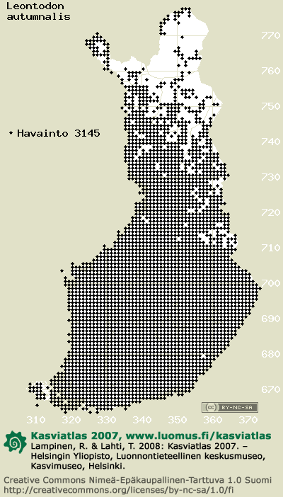Tämä on vuoden 2006 kasviatlaksen karttasivu taksonista Leontodon autumnalis. Tästä taksonista voi olla karttoja myös muissa atlaksen vuosiversioissa: 2018 / 2017 / 2016 / 2015 / 2014 / 2013 / 2012 / 2011 / 2010 / 2009 / 2008 / 2007 / 2006.
