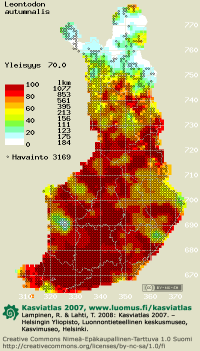 Tämä on vuoden 2007 kasviatlaksen karttasivu taksonista Leontodon autumnalis. Tästä taksonista voi olla karttoja myös muissa atlaksen vuosiversioissa: 2018 / 2017 / 2016 / 2015 / 2014 / 2013 / 2012 / 2011 / 2010 / 2009 / 2008 / 2007 / 2006.