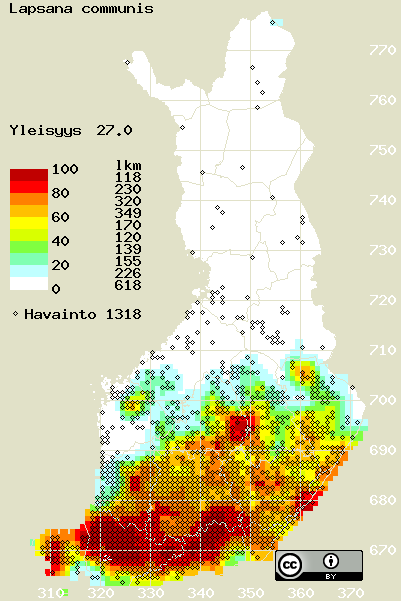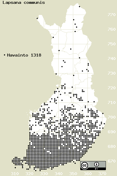 Tämä on vuoden 2017 kasviatlaksen karttasivu taksonista Lapsana communis. Tästä taksonista voi olla karttoja myös muissa atlaksen vuosiversioissa: 2018 / 2017 / 2016 / 2015 / 2014 / 2013 / 2012 / 2011 / 2010 / 2009 / 2008 / 2007 / 2006.