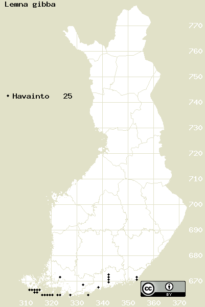 Tämä on vuoden 2017 kasviatlaksen karttasivu taksonista Lemna gibba. Tästä taksonista voi olla karttoja myös muissa atlaksen vuosiversioissa: 2018 / 2017 / 2016 / 2015 / 2014 / 2013 / 2012 / 2011 / 2010 / 2009 / 2008 / 2007 / 2006.