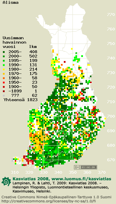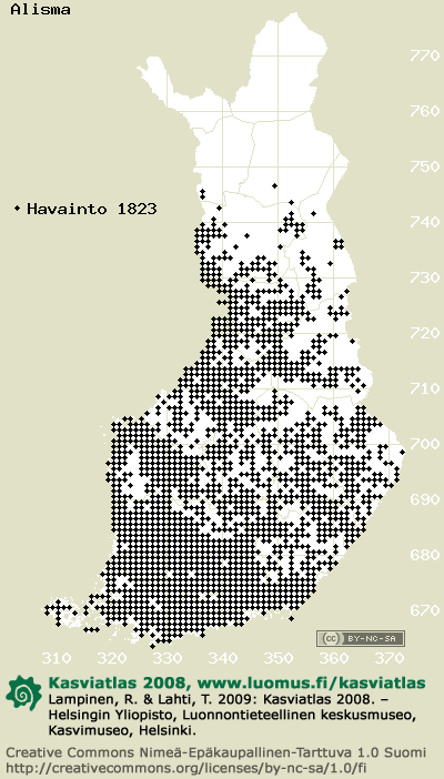 Tämä on vuoden 2008 kasviatlaksen karttasivu taksonista Alisma. Tästä taksonista voi olla karttoja myös muissa atlaksen vuosiversioissa: 2018 / 2017 / 2016 / 2015 / 2014 / 2013 / 2012 / 2011 / 2010 / 2009 / 2008 / 2007 / 2006.
