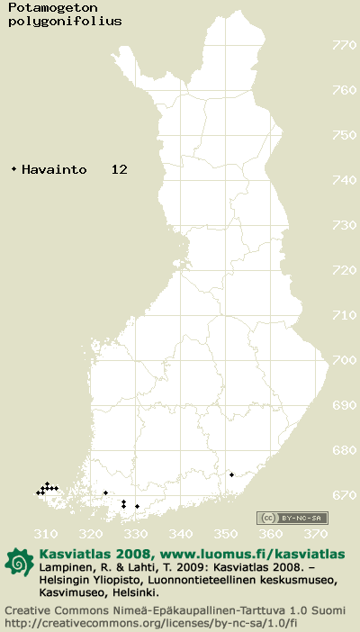 Tämä on vuoden 2008 kasviatlaksen karttasivu taksonista Potamogeton polygonifolius. Tästä taksonista voi olla karttoja myös muissa atlaksen vuosiversioissa: 2018 / 2017 / 2016 / 2015 / 2014 / 2013 / 2012 / 2011 / 2010 / 2009 / 2008 / 2007 / 2006.