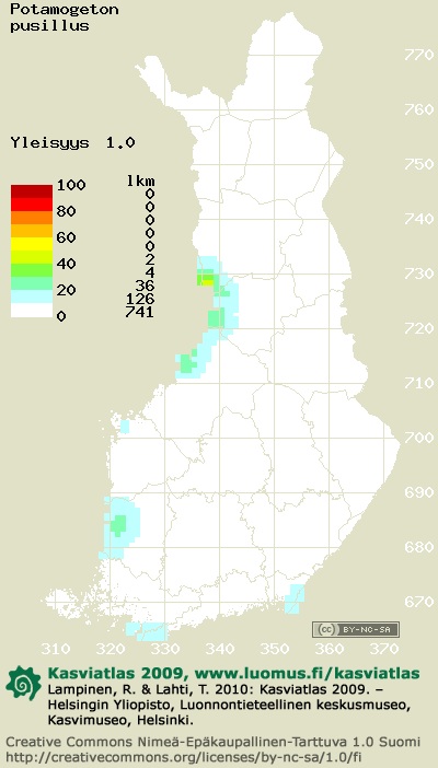 Tämä on vuoden 2009 kasviatlaksen karttasivu taksonista Potamogeton pusillus. Tästä taksonista voi olla karttoja myös muissa atlaksen vuosiversioissa: 2018 / 2017 / 2016 / 2015 / 2014 / 2013 / 2012 / 2011 / 2010 / 2009 / 2008 / 2007 / 2006.