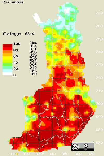 Tämä on vuoden 2017 kasviatlaksen karttasivu taksonista Poa annua. Tästä taksonista voi olla karttoja myös muissa atlaksen vuosiversioissa: 2018 / 2017 / 2016 / 2015 / 2014 / 2013 / 2012 / 2011 / 2010 / 2009 / 2008 / 2007 / 2006.
