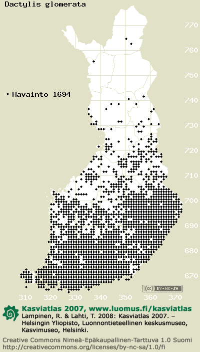 Tämä on vuoden 2006 kasviatlaksen karttasivu taksonista Dactylis glomerata. Tästä taksonista voi olla karttoja myös muissa atlaksen vuosiversioissa: 2018 / 2017 / 2016 / 2015 / 2014 / 2013 / 2012 / 2011 / 2010 / 2009 / 2008 / 2007 / 2006.