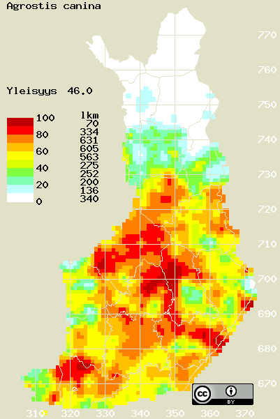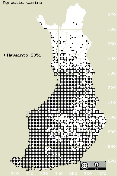 Tämä on vuoden 2017 kasviatlaksen karttasivu taksonista Agrostis canina. Tästä taksonista voi olla karttoja myös muissa atlaksen vuosiversioissa: 2018 / 2017 / 2016 / 2015 / 2014 / 2013 / 2012 / 2011 / 2010 / 2009 / 2008 / 2007 / 2006.