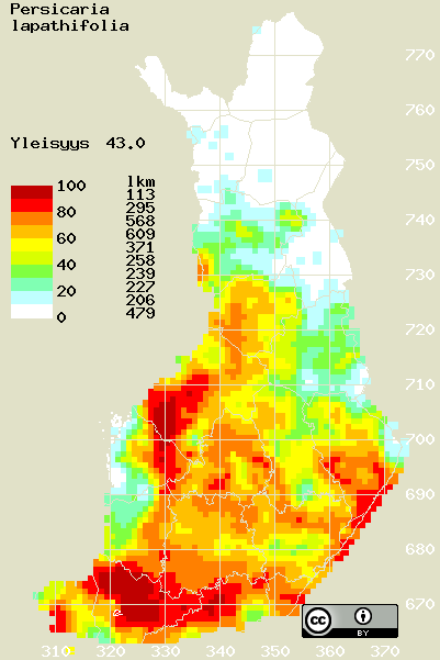 Tämä on vuoden 2017 kasviatlaksen karttasivu taksonista Persicaria lapathifolia. Tästä taksonista voi olla karttoja myös muissa atlaksen vuosiversioissa: 2018 / 2017 / 2016 / 2015 / 2014 / 2013 / 2012 / 2011 / 2010 / 2009 / 2008 / 2007 / 2006.