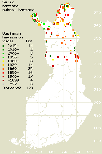 Tämä on jatkuvasti päivittyvä kasviatlaksen karttasivu taksonista Salix hastata subsp. hastata. Tästä taksonista voi olla karttoja eri vuosien atlaksissa: 2018 / 2017 / 2016 / 2015 / 2014 / 2013 / 2012 / 2011 / 2010 / 2009 / 2008 / 2007 / 2006.