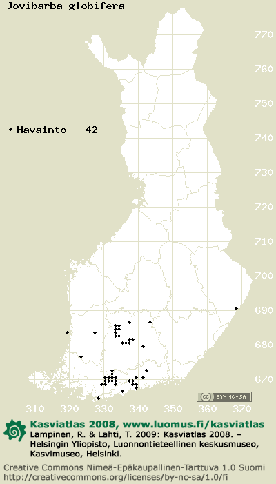 Tämä on vuoden 2008 kasviatlaksen karttasivu taksonista Jovibarba globifera. Tästä taksonista voi olla karttoja myös muissa atlaksen vuosiversioissa: 2018 / 2017 / 2016 / 2015 / 2014 / 2013 / 2012 / 2011 / 2010 / 2009 / 2008 / 2007 / 2006.