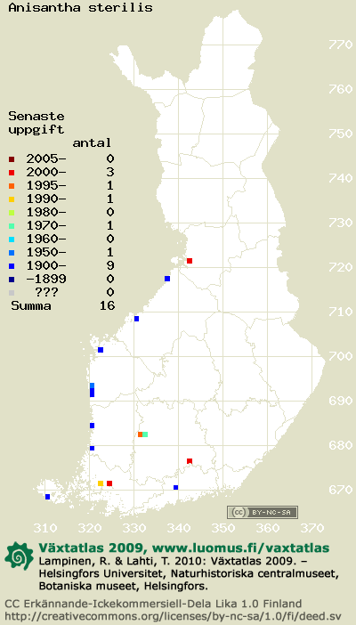 Detta är årets 2009 kartsida över taxonet Anisantha sterilis. Över taxonet kan finnas kartor även från andra år: 2018 / 2017 / 2016 / 2015 / 2014 / 2013 / 2012 / 2011 / 2010 / 2009 / 2008 / 2007 / 2006.