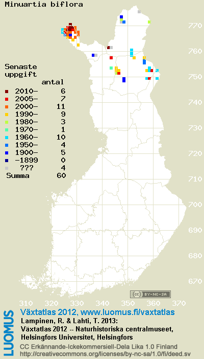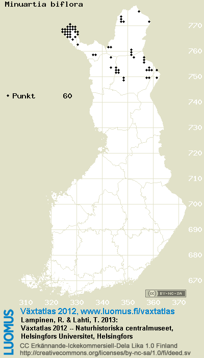 Detta är årets 2012 kartsida över taxonet Minuartia biflora. Över taxonet kan finnas kartor även från andra år: 2018 / 2017 / 2016 / 2015 / 2014 / 2013 / 2012 / 2011 / 2010 / 2009 / 2008 / 2007 / 2006.