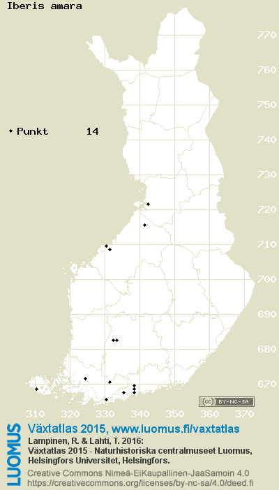 Detta är årets 2015 kartsida över taxonet Iberis amara. Över taxonet kan finnas kartor även från andra år: 2018 / 2017 / 2016 / 2015 / 2014 / 2013 / 2012 / 2011 / 2010 / 2009 / 2008 / 2007 / 2006.
